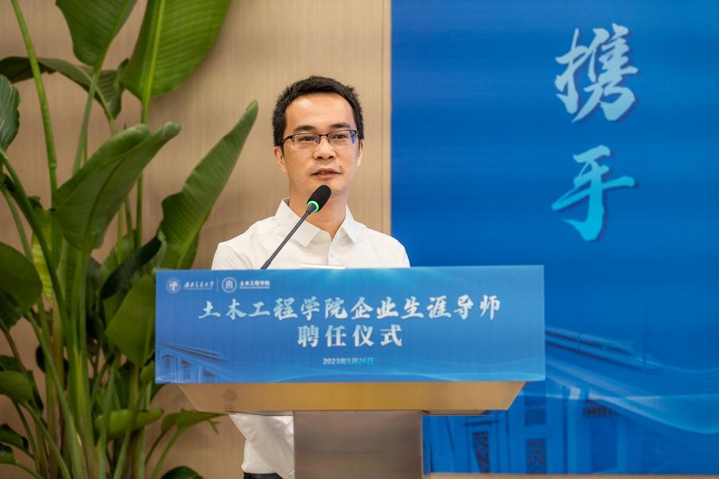 能再接再厉,将“新土木·欣土木·心土木”的工作实施方案持续深入推进落实。讲话最后,余敏明副书记再次对各位企业生涯导师为广大学生提供的职业生涯规划指导和实习实践就业机会表示感谢,并希望同学们心怀家国、心怀感恩,踔厉奋发、砥砺前行。