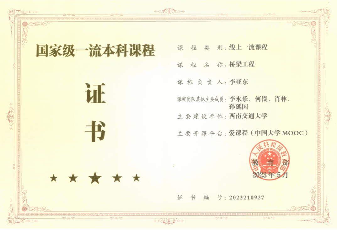 10门国家级一流本科课程证书