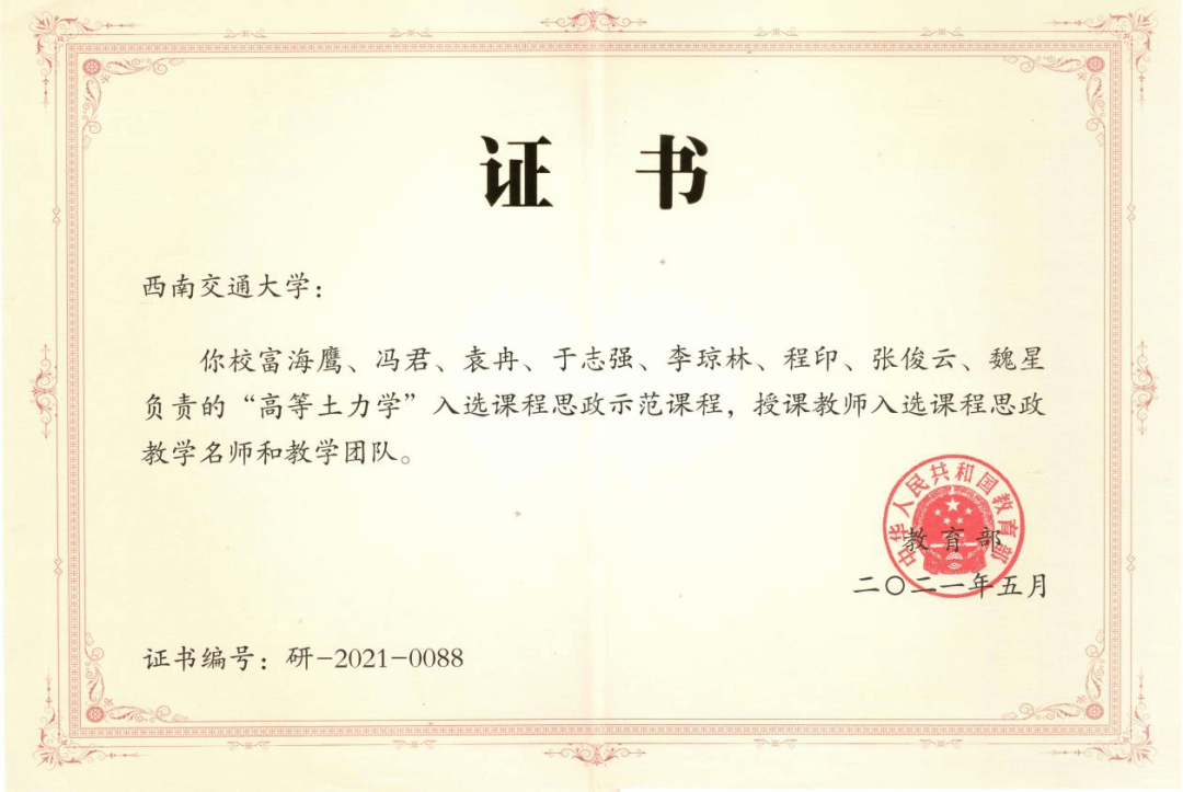 交通隧道工程首批全国高校黄大年式教师团队