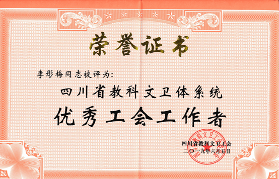 李彤梅同志获得“四川省优秀工会工作者”称号