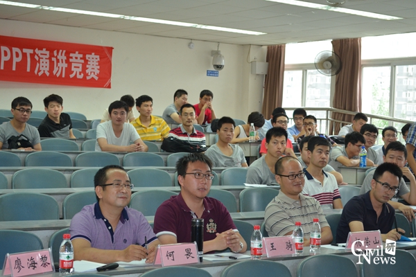 6月12日14:30,足球让球盘 第二届研究生PPT学术演讲竞赛在逸夫馆4409教室举行,本次比赛旨在锻炼研究生的学术表达及PPT制作能力,推动研究生综合素质的提高。14名参赛选手通过各系“学术表达与沟通”课程授课老师推荐及自愿报名的方式产生,涵盖土木足球盘 了各专业的硕士研究生。土木足球盘 副院长廖海黎教授与各系“学术表达与沟通”课程的授课老师何畏副教授、杨荣山副教授、杨文波副教授、王骑老师、龙丹冰老师共同担任本次比赛的评委。