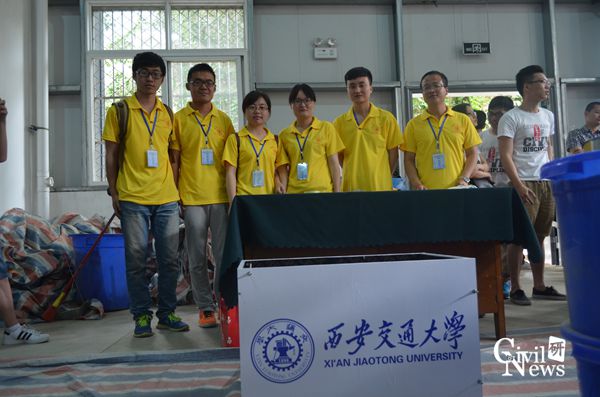 ,是本次参赛队伍中路途最遥远的学校,队员们经过51个小时的火车来到成都,长途跋涉并没有磨灭他们的斗志,小组成员感言:赛前30多组的模拟实验,是一个量变到质变的摸索过程,本组的创新点在于单点梅花桩散放技术,使各点受力均匀,比赛让他们收获颇丰。这个特殊的队伍的独特创新点获得了评委的一致好评。