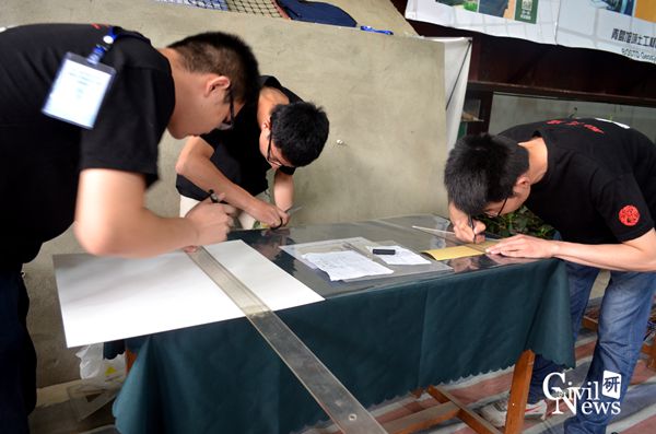 比赛最后,对于参赛学生进行了采访。同济大学代表队提出的创新点是事先将挡墙和荆条均做成模板,比赛时直接依据模板剪裁,节省时间。小组成员感言:比赛是对专业课知识的运用,理论联系实际的体现。比赛是相互学习的过程,学习不同小组的创新点,才能更好的完善自己的方案,此次比赛的收获不仅是知识的巩固,更是一种能力的提高。