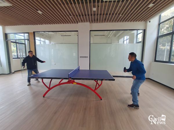 教职工之家有教职工活动室、阅览室、健身区等功能区。足球盘