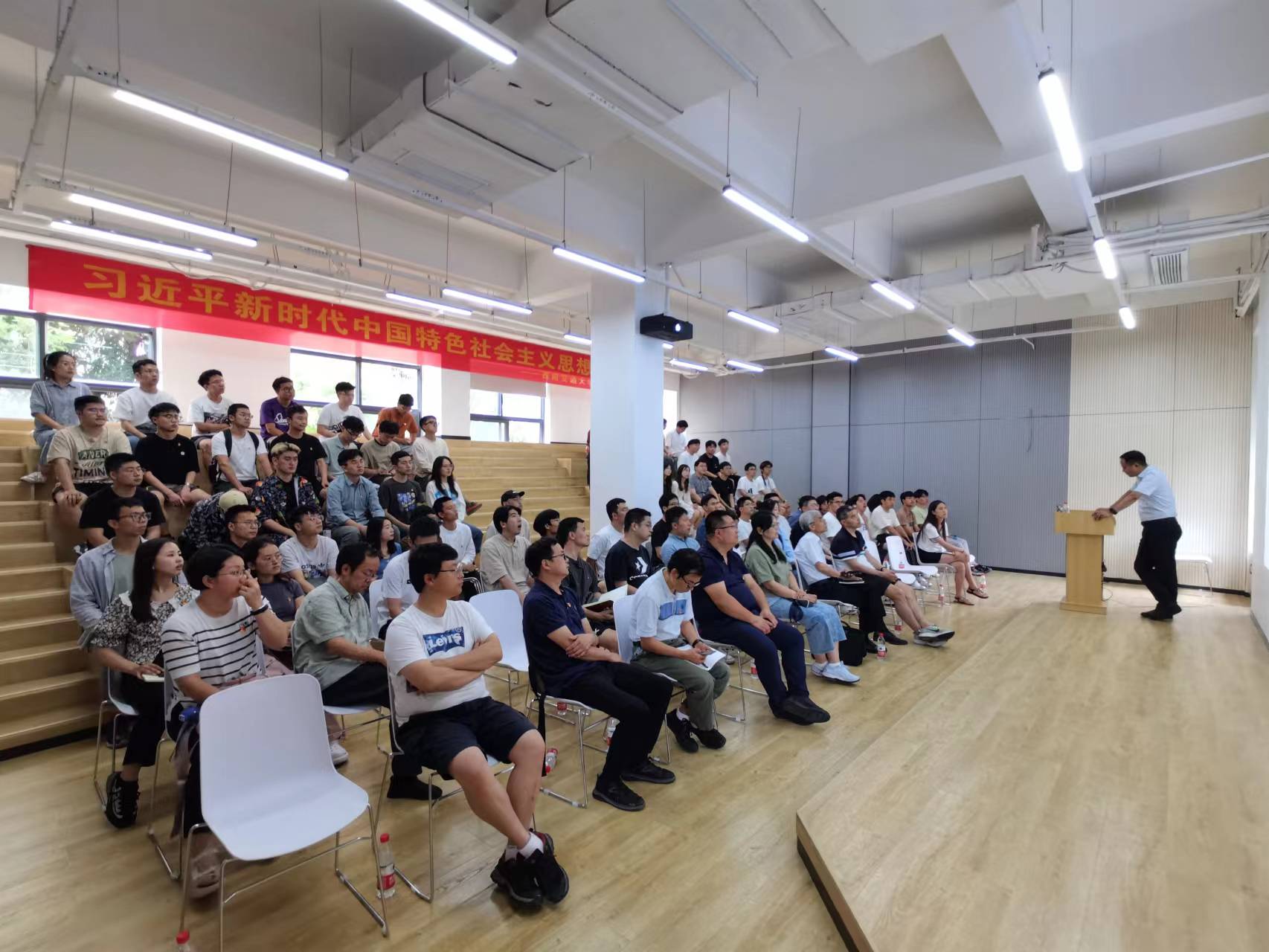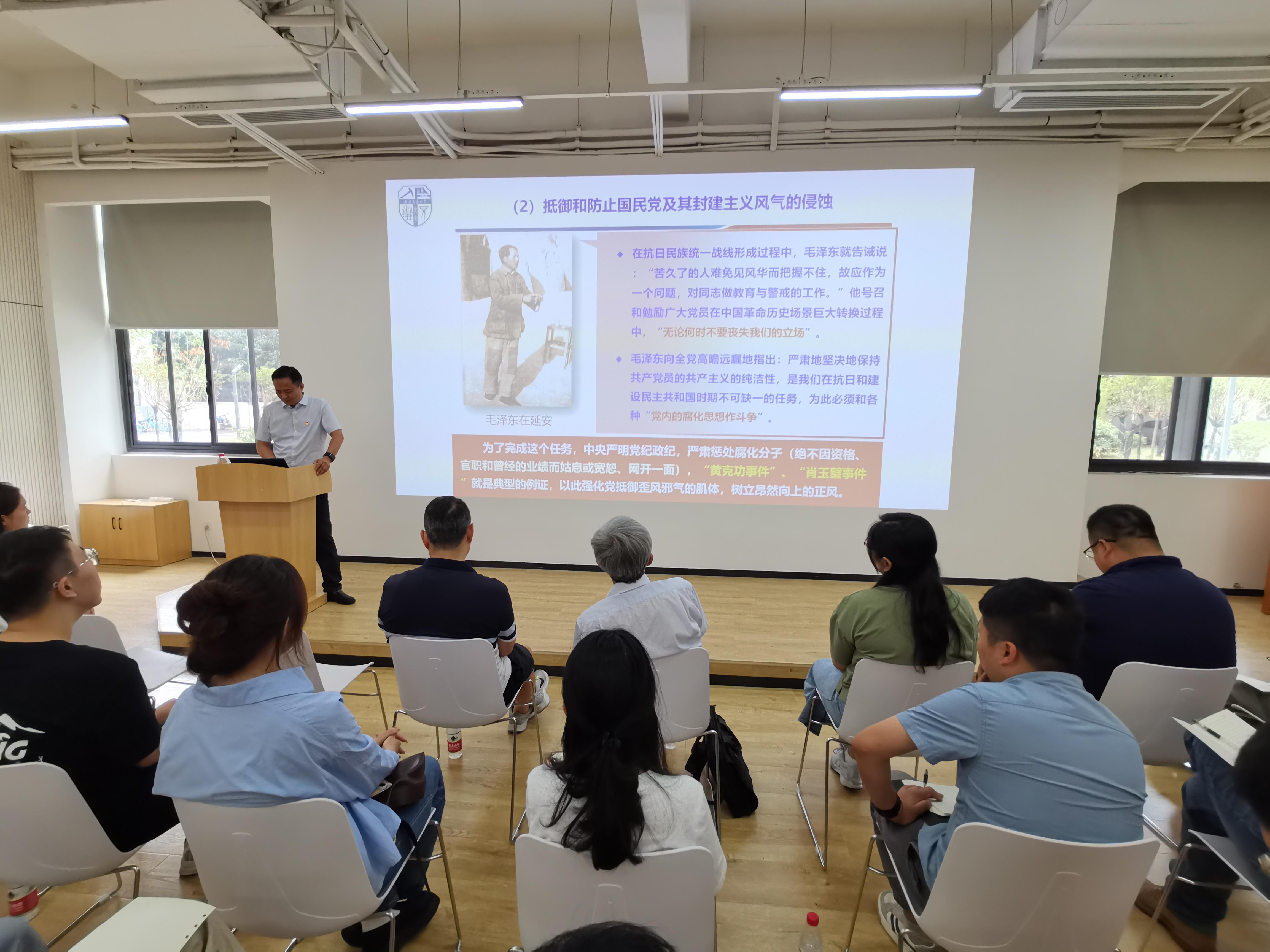 中心组,教职工党支部书记、委员,学生党支部书记、委员参加了本次党课。学校主题教育监督指导组第六组组长谭永东院长莅临指导。党课由足球盘