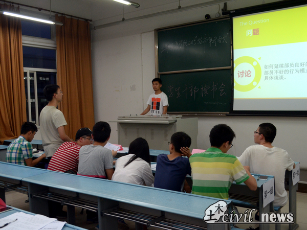 来自科创中心的苏昂对《价值层次:决定成功的最终要素》谈了自己的见解。他从价值观的形成、作用以及建立向大家说明了价值观对一个人的意义。“价值观对人的情绪有超乎想象的影响力,共同的价值观是达成共识的基础”,苏昂这样讲到。最后,来自学生会的卢浩对《解除限制:你追求什么?》进行了讲解。他主要根据在学生会中工作所面对的各种各样问题以及其解决方式谈了自己对“目标”以及“设限”这两个词语的理解。他认为在日常工作中一定要有一个目标,目标是激发人前进的动力,而且在工作中不要给自己设限,有限的目标会造成有限的人生,所以要尽量扩宽自己的区间。在此期间,各个组织均谈到了工作中所遇到的问题,并向大家展示了他们的解决办法。例如,科创中心所遇到的问题则是参赛人员对赛题学习的不足,而他们也表示将会进一步完善自己的工作,争取更完美的竞赛。