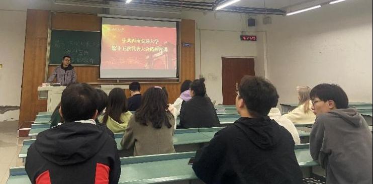 2022年10月13日下午,土木学生造价党支部在X4151召开会议,集体深入学习中国共产党西南交通大学委员会第十五次代表大会精神。会议由党支部书记鲁佳欣同志主持,支部全体党员参加了会议。