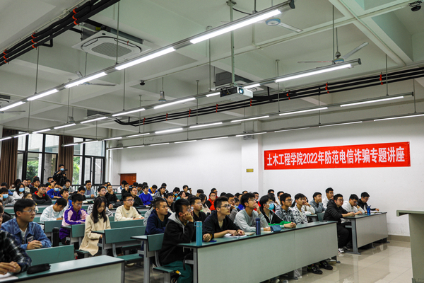 首先,陈警官引出电信诈骗的定义,大致介绍了刷单诈骗、冒充公检法诈骗、买卖游戏装备诈骗、网络贷款诈骗、裸聊诈骗等新型诈骗。他针对其中的网络诈骗、信用卡贷款诈骗等进行了深层剖析,指出相关诈骗行为越来越贴近大学生的生活层面。诈骗人通过一个个诱导陷阱,一步步夺取大学生的信任,最终实施诈骗。对此,陈警官希望同学们能提高警惕,警钟长鸣,时刻关注自己的财产安全。