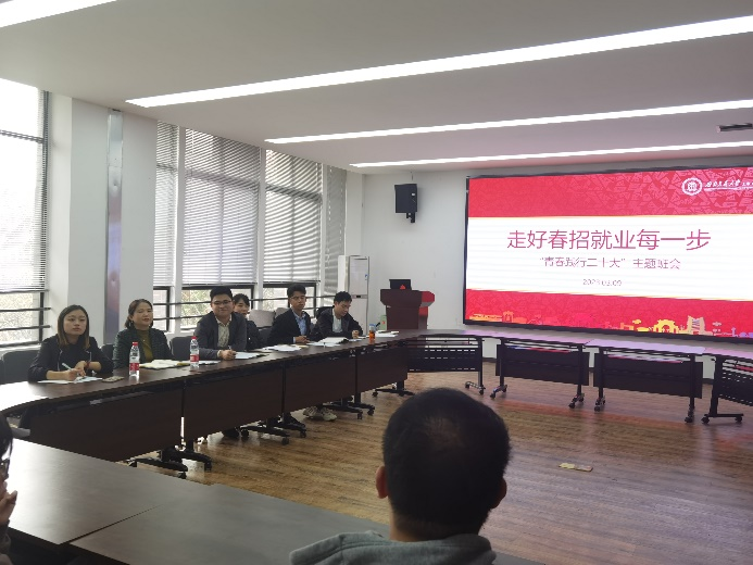 班会中主要围绕毕业生就业问题展开了讨论。同学们纷纷分享了自己在升学、就业等方面遇到的困难,在此基础上,黄春蓉副处长从各位同学自身特点出发进行了指导讲解。易洺瑶老师也提到,新时代青年就业与思想情况不断发生变化,与同学们的这次交流也使自己有了许多新的想法。