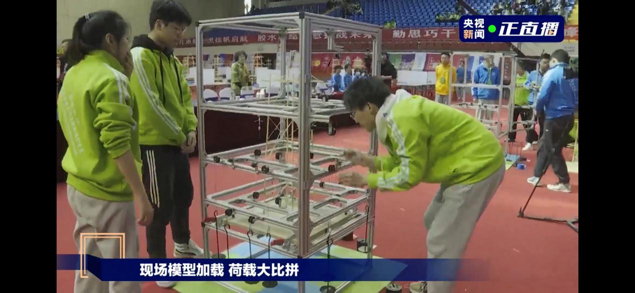 我校的模型名称为"轻",寓意轻盈、轻巧、轻松。模型组成如下:基础为四角柱形框架结构,塔身为三重木塔结构,每重塔由四个角柱和四个斜撑组成,角柱之间用横梁连接,斜撑之间用斜撑梁连接,塔顶为四角锥形框架结构。模型设计时,充分考虑了木材的弹性变形和强度降低,采用了多种连接方式,如榫卯连接、螺栓连接、绳索连接等。模型结构简洁明了,传力合理有效,制作精细规范。加载试验表明,模型可适应多个工况下的弯压扭组合应力,并具有较好的抗震性能。同时,比赛现场被央视新闻直播。