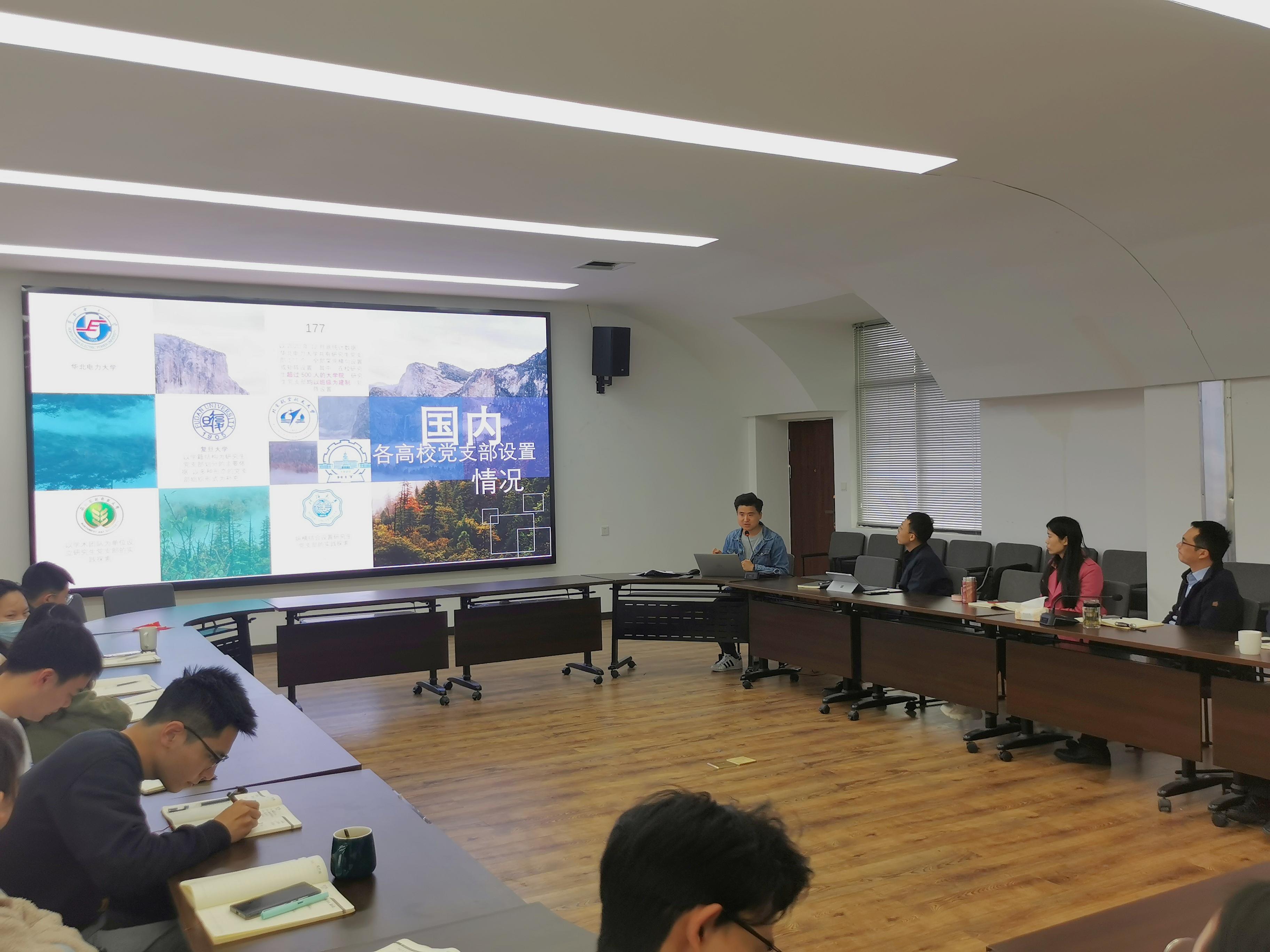 本科生党员发展、党总支建设思考等方面进行了本科党建工作情况汇报,并从建立党支部人员信息库、优化党员发展细则等四个方面提出建议。强博文老师介绍研究生党建工作情况,从党建现状、其他足球盘