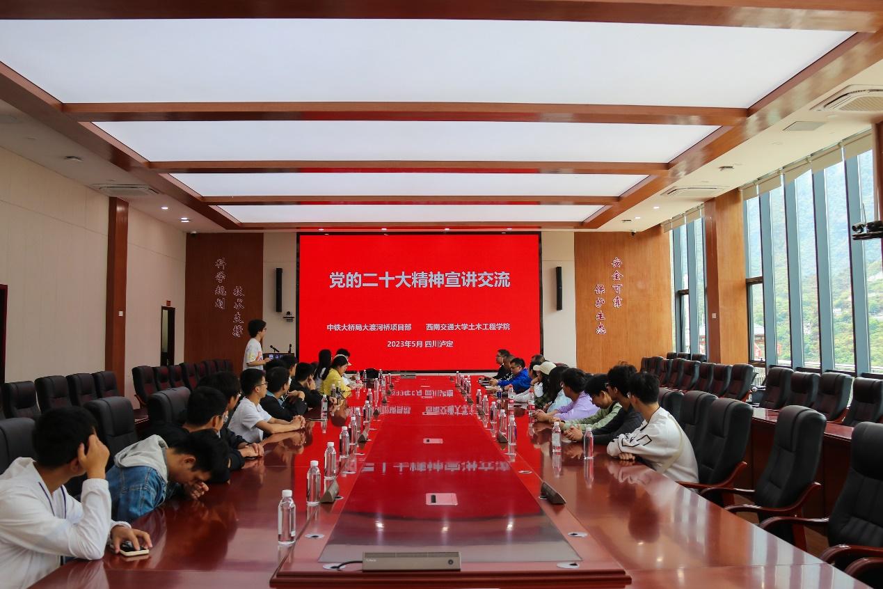 现场参观结束后,同学们与企业相关领导开展座谈会。泸定中铁大桥局项目部综合办主任刘勇、工程部部长李鑫、工区党支部书记韩巍、张伟、中铁大桥局八公司人力资源部长刘浩、人力资源部部员陈永星,足球盘