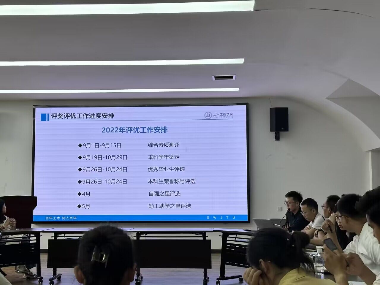 本学年各项评优评奖工作的时间安排、综合素质评价方法和注意事项等。柯妍老师总结了本科生足球盘的工作情况和组织现状,提出了对调整宣传组织架构的思考,同时提到了宣传工作的改进方法和如何实行结构优化。最后,商姚老师对研究生足球盘的工作情况和后续计划进行了总结。