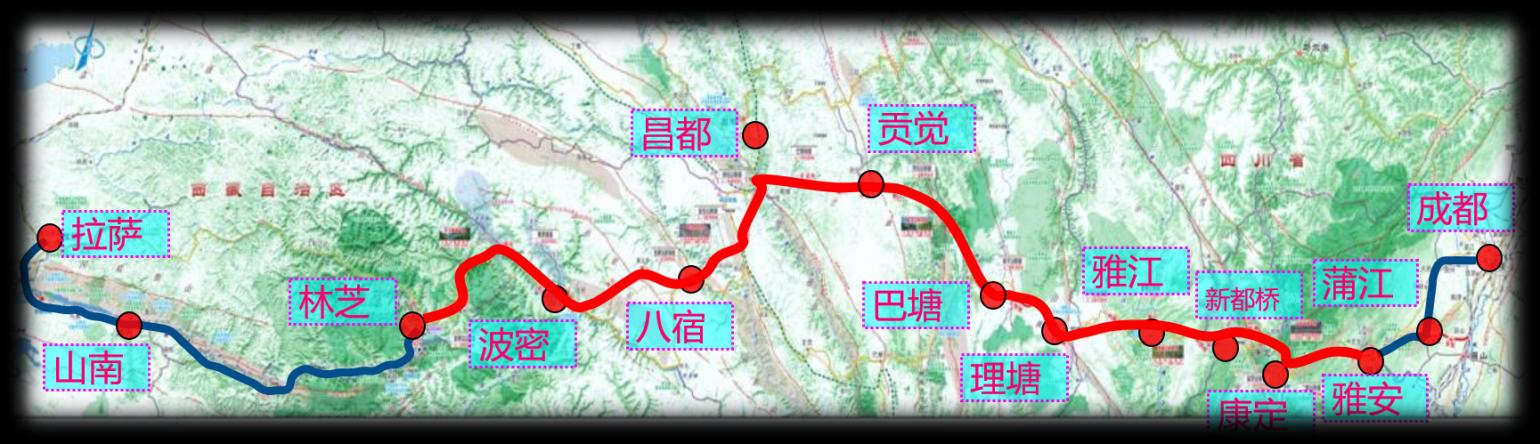 通向地球屋脊、雪域高原的“川藏铁路”从天府之国的成都平原出发,跨雪山、穿峻岭、越大河,登上雪域高原的圣城拉萨,是当之无愧的世纪工程。建设一路向前,征服21座4000m以上的雪山、14条大江大河以及数十条地震断裂带,所经过地区拥有比成昆铁路“地质博物馆”还要复杂的地质条件,又有比南昆铁路“地下迷宫”更为艰险的地形地貌,还有比青藏铁路“天路工程”更为恶劣的自然条件。
