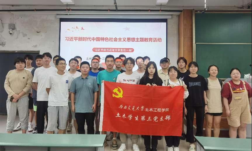 2023年6月13日星期二下午3点,在西南交通大学犀浦校区X4350教室,土木学生第一、二、三党支部党员同志们整齐端坐,大家专注地聆听土木学生第二党支部书记张铭煊主持“习近平总书记与大学生在一起”主题党日活动。