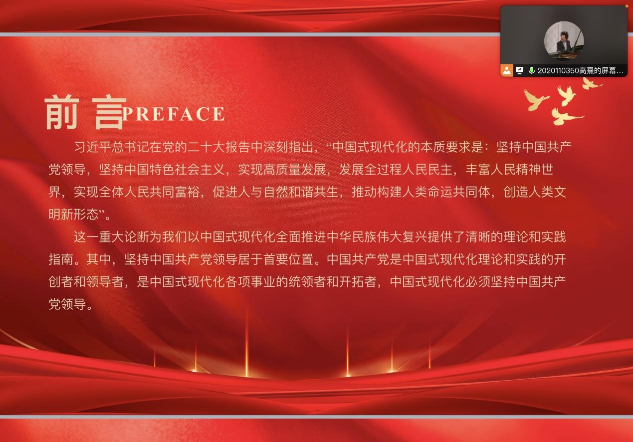 本次党课教育学习活动中,高熹从中国式现代化的五个特色讲起,谈到了中国式现代化的本质要求,强调了中国式现代化的最本质要求是中国共产党的领导。同时,中国式现代化离不开每一位中国青年,需要每一位中国青年作出自己的贡献,党员同志要做到自觉遵守支部的组织纪律,积极做事,凝心聚力,提高理论学习,积极贯彻落实二十大精神。