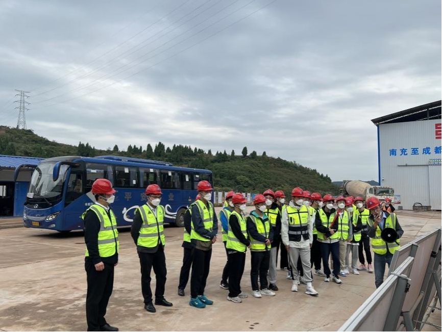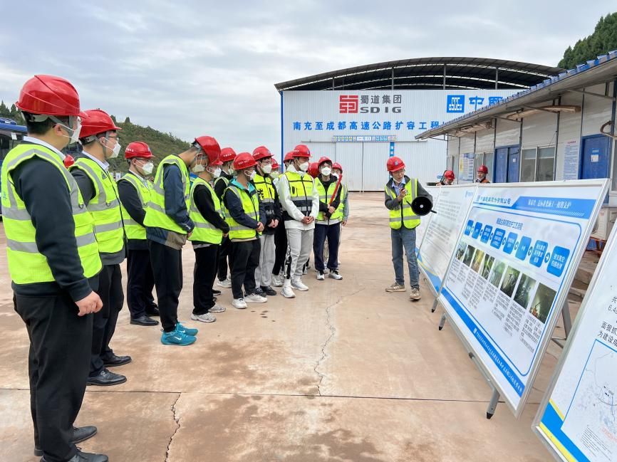 师生跟随企业代表前往中国建筑土木建设有限公司成南高速扩容项目部驻地用餐,短暂休息后,大家前往项目部会议室,成南高速扩容项目党建负责人牛天鹏为大家介绍了项目基本情况,项目安全总监为大家讲解了参观施工现场时的注意事项,随后大家前往成南项目陈家湾隧道观摩,施工现场站长为大家介绍了施工概况,并针对同学们的疑惑进行一一解答。