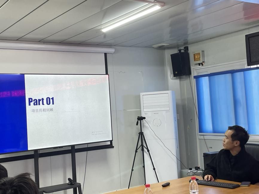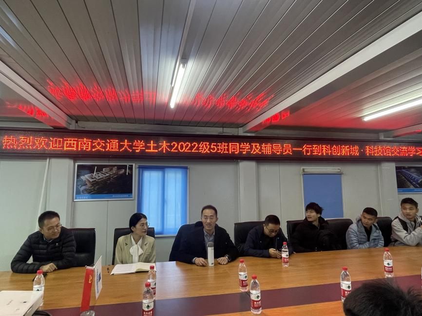 师生返回科创新城·科技馆项目会议室进行座谈交流。项目技术员陆超旭依托科创新城·科技馆项目情况及关键节点,让同学们更加深入了解了项目实际施工中的重点难点。此外,还特别邀请到了我校校友,科创新城·科技馆项目部商务经理李秀杰给同学们分享了入职以来的心得体会,在与同学们的交流讨论中,解答了同学们心中的疑惑。