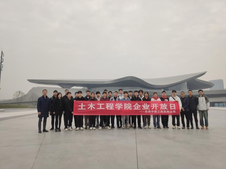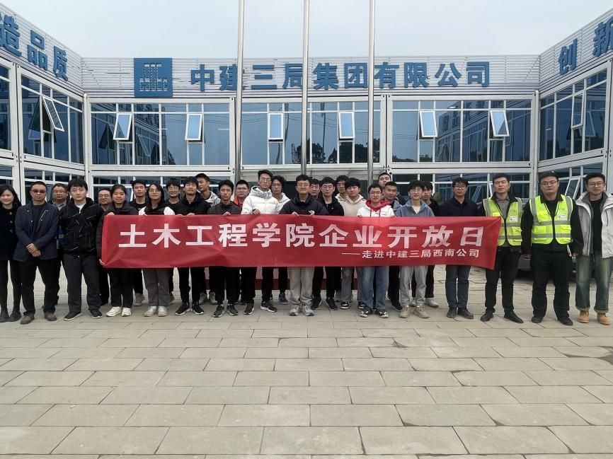 联合中建三局西南公司举办了企业开放日活动。本次活动由土木2022-05班企业生涯导师陈晨、陈雪峰,中建三局人事部经理张师和2022级辅导员李策共同带队。