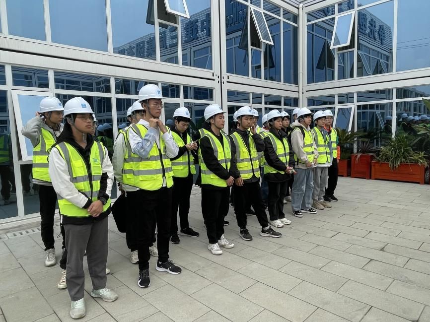 师生分放了安全帽,进行了安全交底并在进入施工现场前进行了详细的注意事项说明,在工作人员的带领下,同学们来到了项目现场参观学习,在观摩过程中,项目部工作人员全程认真细致的进行解说,让同学们在实践中深刻认识土木行业发展的新技术和新标准。