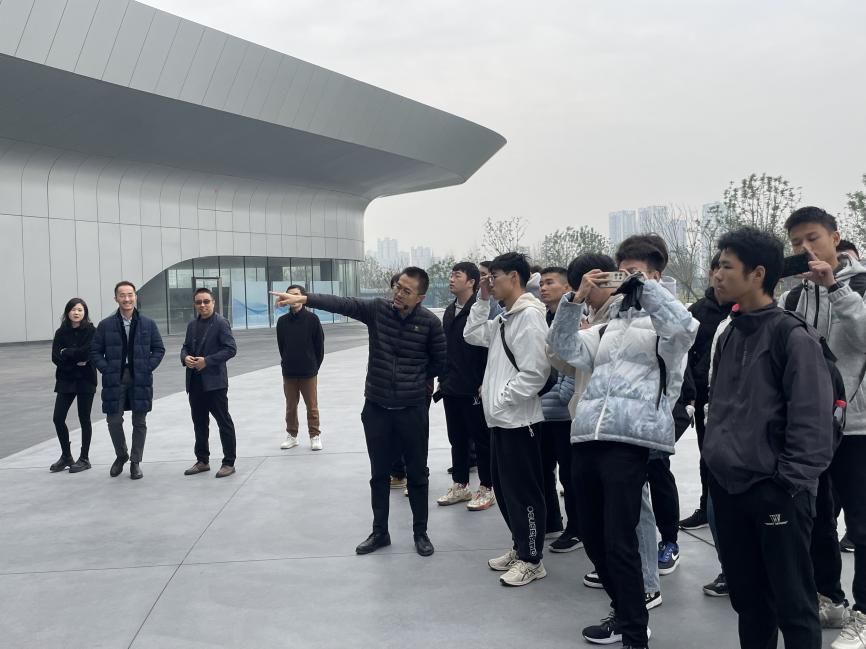 师生一行人前往中建三局西南公司科创新城·科技馆项目。抵达项目现场后,项目总工李树文为足球盘