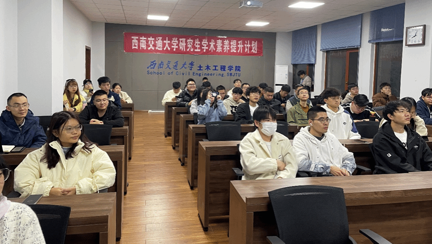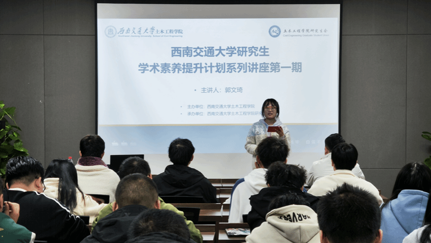 研究生会承办的“西南交通大学研究生学术素养提升计划”系列讲座第一期于土木馆1237教室成功举办,我校共有40名硕士研究生参与本次讲座。本次讲座邀请了郭文琦师兄为广大研究生同学进行科研经验分享,从论文写作要点、科研工具使用和期刊选择等多方位全面地交流了研究生应具备的学术素养能力。