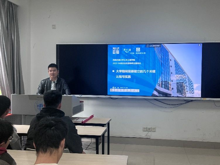 中建一局西南公司信息部经理邵刚导师围绕大学期间需要建立的几个关键认识与实践的主题和大家进行交流。“大家有没有具体想过,自己大学毕业之后要去干什么?”邵刚导师的“灵魂发问”让同学们现场进行了思考。同学们纷纷表示,目前状态比较迷茫,具体以后做什么还没有认真考虑过。邵刚导师和同学们分享了自己在大学时的经历,提醒同学们要重视每一门专业课程。他指出,在全民教育水平不断提高、学历稀缺性逐渐下降的现实情况下,同学们要努力提升自身核心竞争力,即专业“硬知识”转化为社会所需的通用“软技能”的能力。