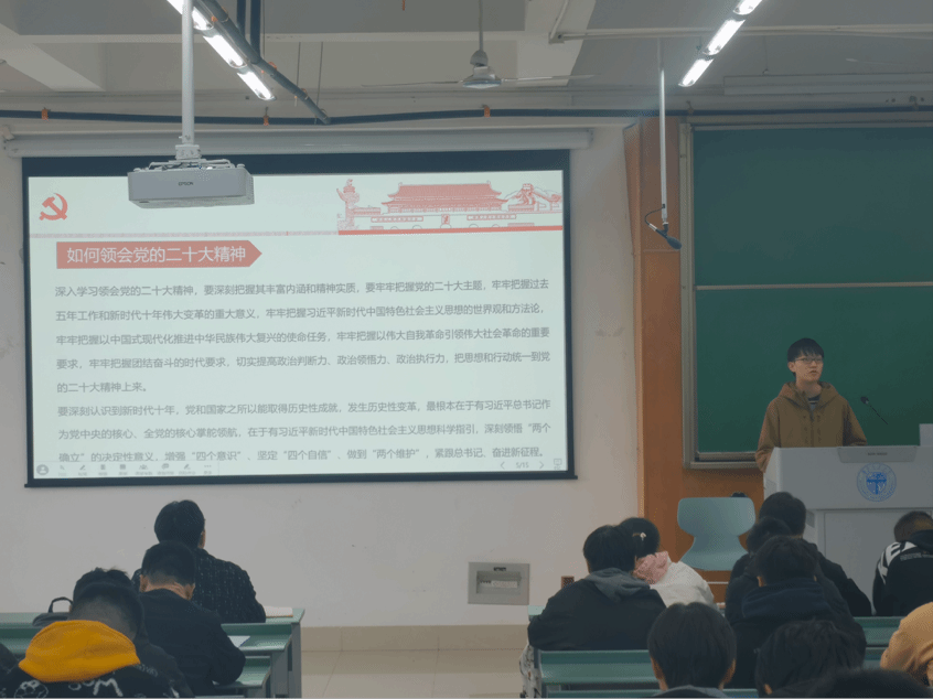 本次实践活动邀请到了博士宣讲团的王浪老师,他以“学习贯彻党的二十大精神·争做奋发有为的合格党员”为主题,带领发展对象们从《中国共产党章程》的角度出发,深入学习了党的二十大的主题、精神、地位以及成果,了解了党章的发展历史和演进历程。