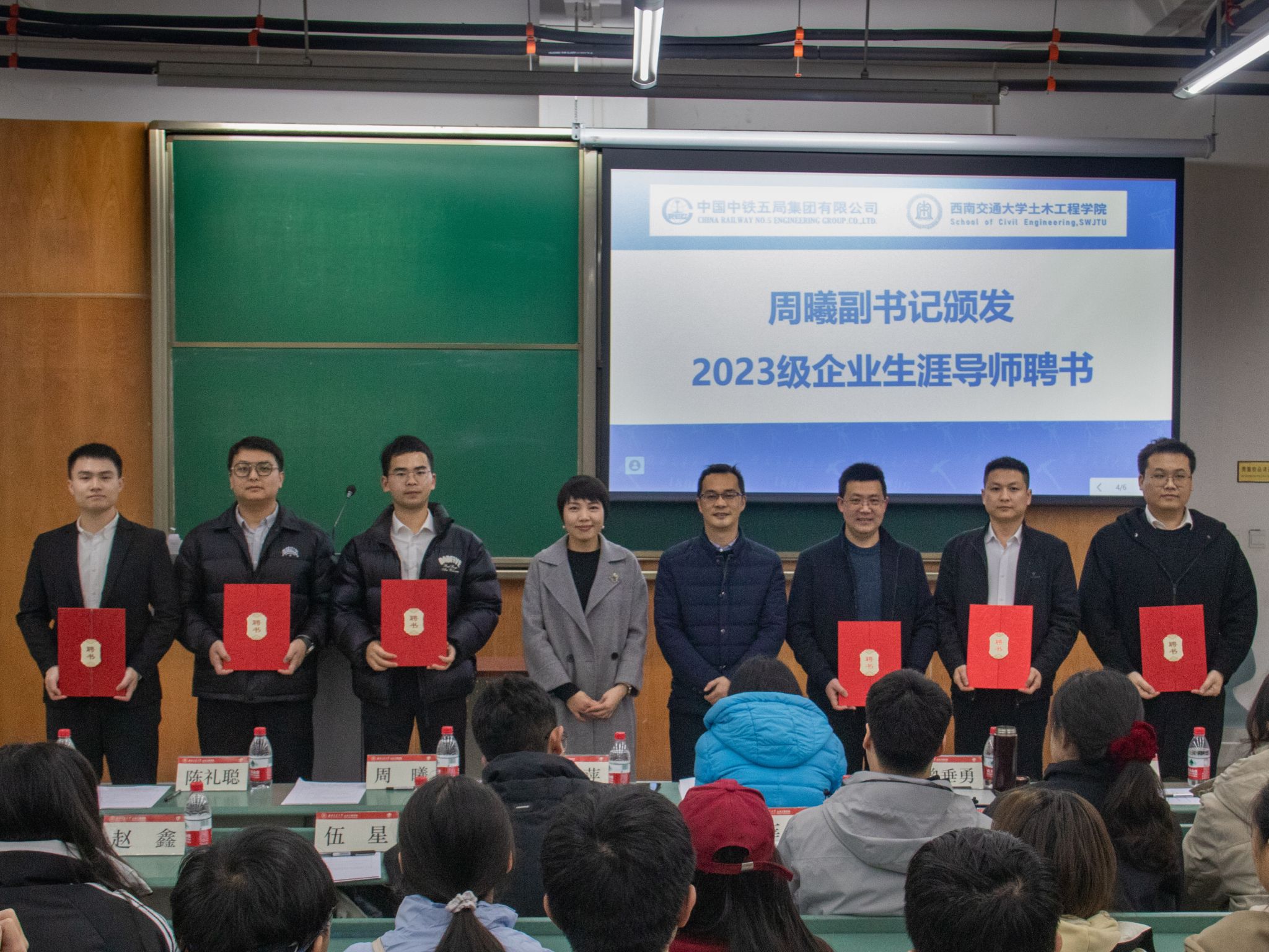 会议第二项,由周曦副书记向中铁五局2023级企业生涯导师颁发聘书,并进行拍照留影。周曦副书记再次向中铁五局对足球盘