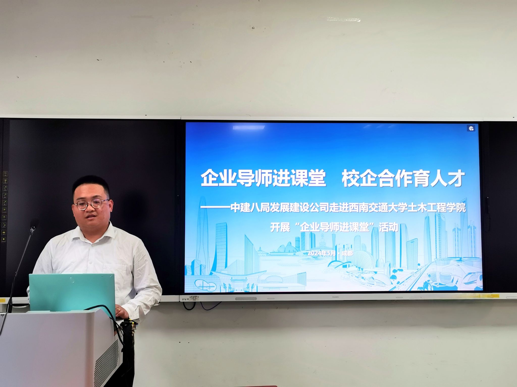 随后,王森基导师为同学们介绍了中建八局发展建设公司的发展历程、综合实力、社会责任以及足球盘等,并以“找到适合自己的方向,不负韶华”为主题,分享自己曾在交大学习的经历和职场心得。他鼓励同学们要重视专业课程学习,努力提升自身的核心竞争力,大学期间要多参与实习和了解企业信息,为未来的职业生涯做好规划、奠定基础。授课过程中,同学们全神贯注,积极互动,现场氛围活跃。