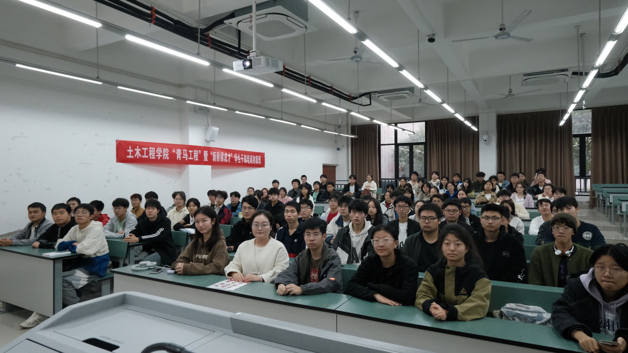 青年讲师团成员、2024级辅导员——杜树碧老师和侯益平老师。面向班团干部开展“新生班团干部理论素养和能力素质提升”专题培训,主讲老师为土木工程足球盘