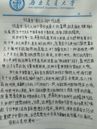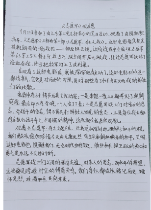 讨论结束后,支部成员还撰写了电影观后感,进一步加深对伟大抗美援朝精神的理解。大家一致认为,此次观影活动不仅是一次生动的爱国主义主题教育,更是一次深刻的思想洗礼。通过观影,支部成员激发了内心深处的使命担当,坚定了继承先烈遗志、赓续红色基因的决心。