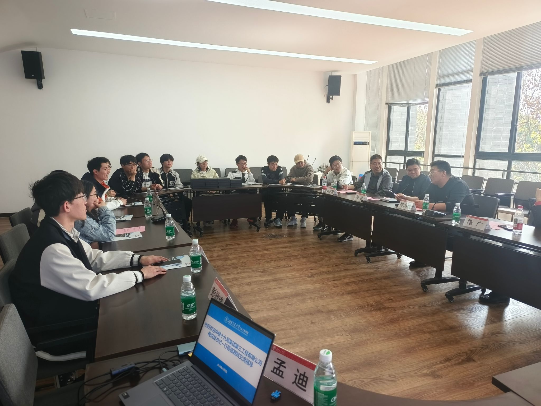 随后展开自由交流。同学们就企业晋升途径、发展待遇、土木行业发展形势、考研的意义等方面提出疑惑,中铁十九局三公司的各位领导一一做出解答。梅洪斌董事长结合自身发展经历,为同学们提出许多宝贵建议,并表示:无论时代如何变迁,完善自身永远是制胜法宝,只有不断提升个人价值,才能在时代洪流中永立潮头。