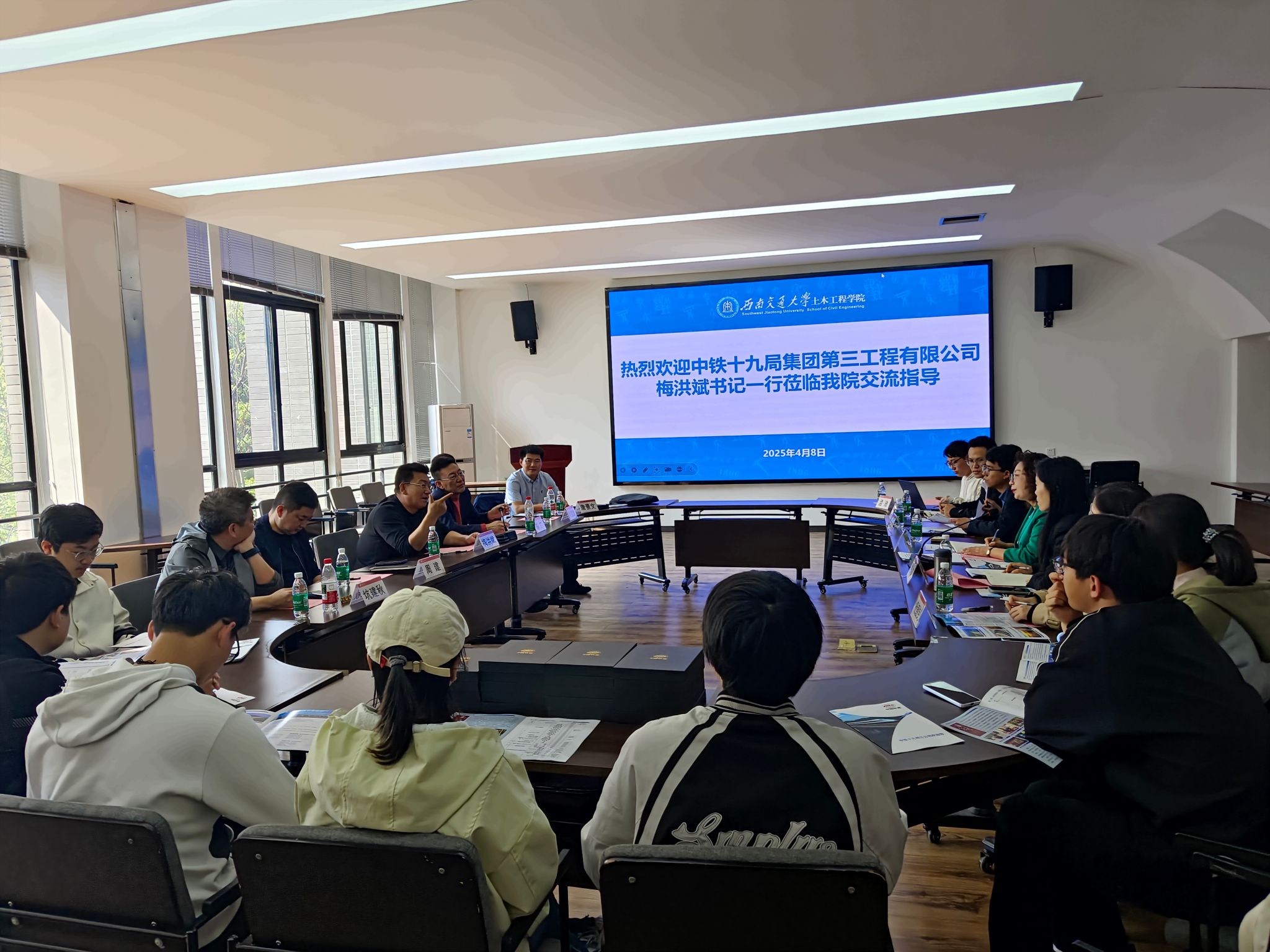 2025年4月8日上午10:30,中铁十九局三公司董事长梅洪斌、纪委书记陈广、第八项管部经理周建、第十项管部经理刘韫鑫、第十一项管部经理坑建秋、党委干部部部长唐景文一行走访足球盘-足球让球盘