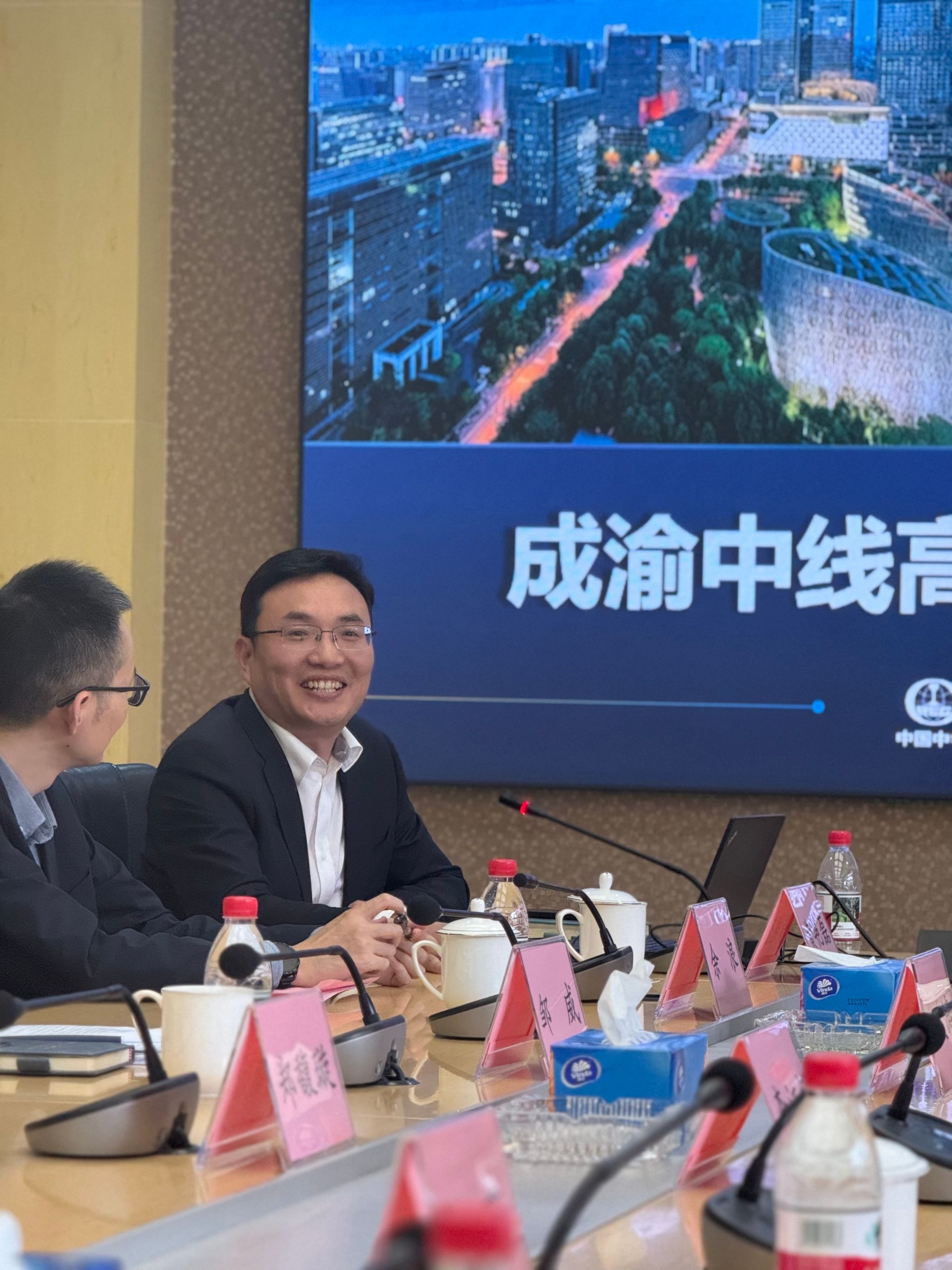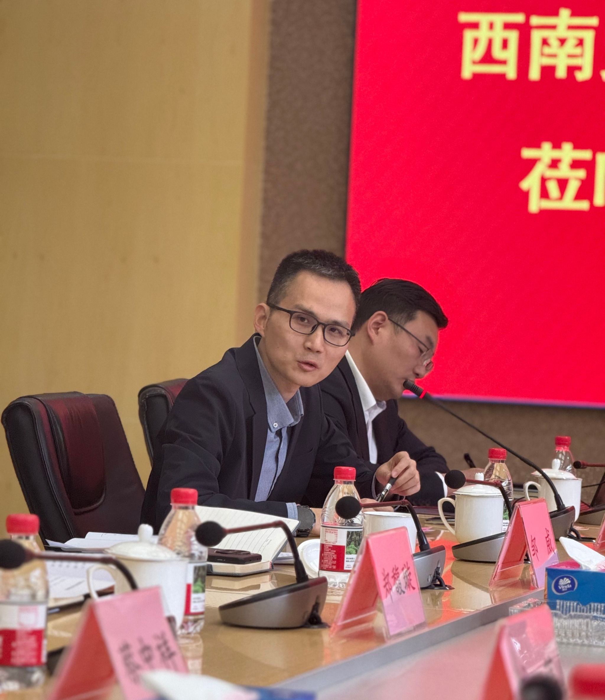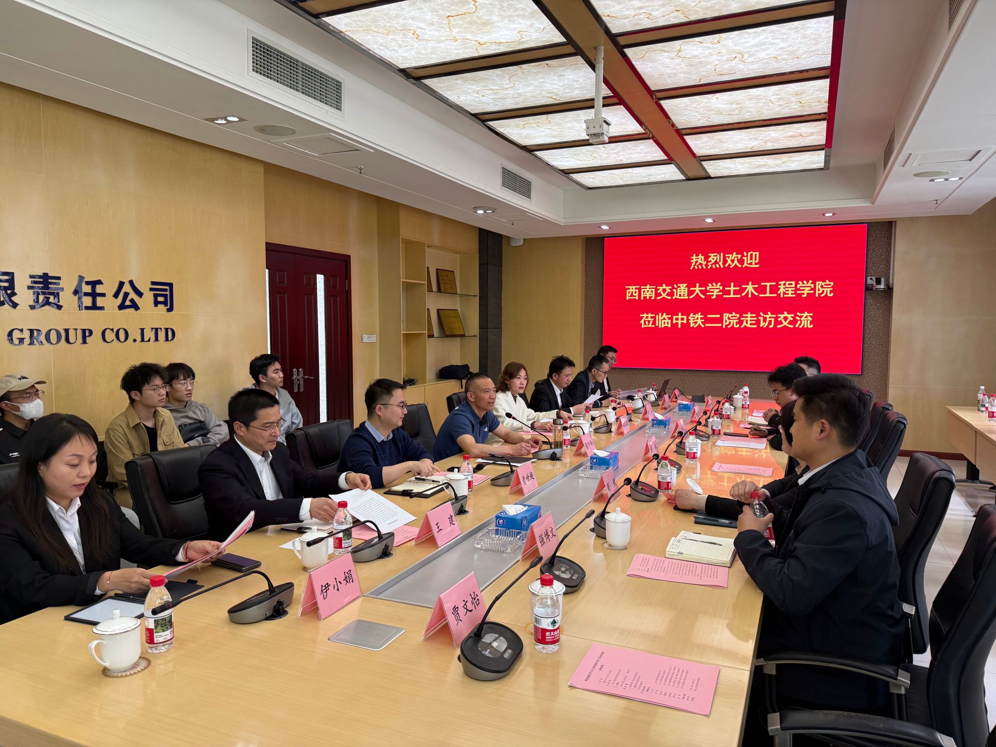 师生齐聚会议室,开展座谈会。中铁二院工会副主席蔡中祥首先对西南交通大学师生的到来表示热烈欢迎。紧接着,来自中铁二院的4位西南交通大学优秀毕业生及劳模先进代表分享了自身的宝贵经验。