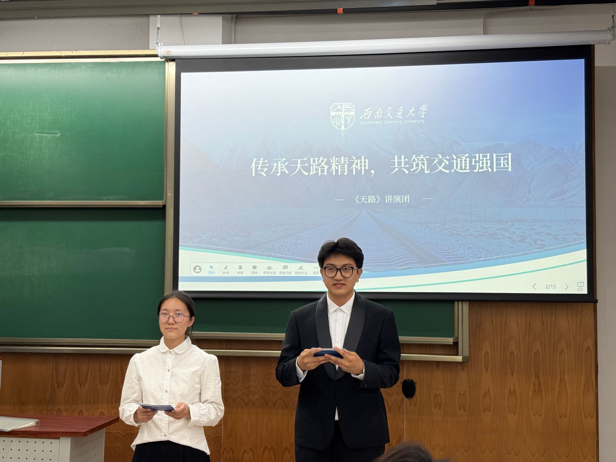 本次课程以“传承天路精神,共筑交通强国”为主题,精心设计四大核心环节:学习青藏铁路知识、宣讲青藏铁路精神、大学生艺术团成员合唱歌曲《天路》以及新老传承对话,系统展现了交通强国建设的精神脉络。