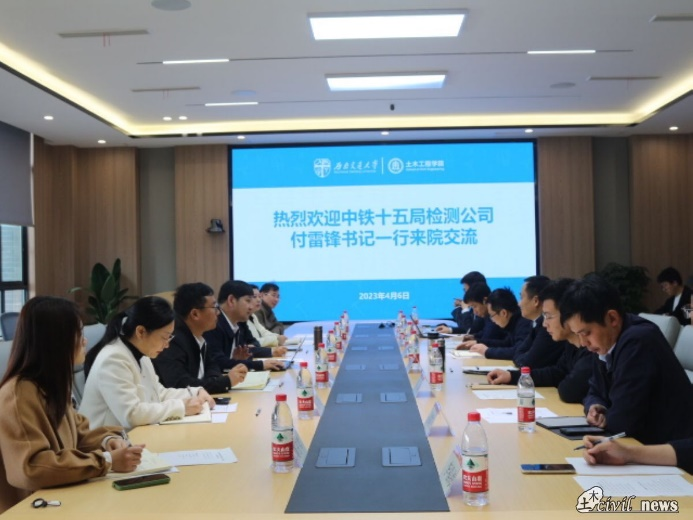 4月6日上午,中铁十五局检测公司党委书记付雷锋,党委副书记张长春,副总经理李育海,综合部经理周丽民,工程试验部经理周军艳,混凝土专家朱建立,工程测量部部员蒋子琴一行人来院进行科研、就业情况交流,足球让球盘