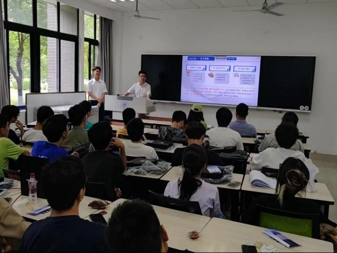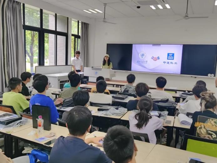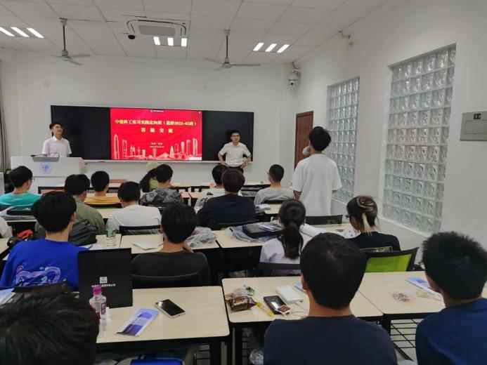 随后,魏梦潇导师介绍了公司发展概况、资源优势、业务板块等基本情况,并对中建科工实习实践定向班培养方案进行宣贯,明晰了定向班设立的目的和意义,深入浅出地讲解了定向班的人才培养体系与具体举措,帮助同学们深入了解建筑行业前沿发展趋势、做好个人职业规划,提高求职就业竞争力。