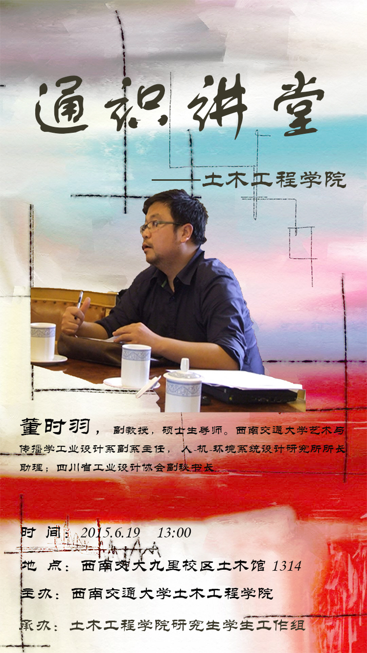 工业设计系董时羽教授做客第二期“通识讲堂”,并为广大研究生同学带来“设计心理学”专题讲座。我们期待您的参与,一起领略别样风采,青春研途。