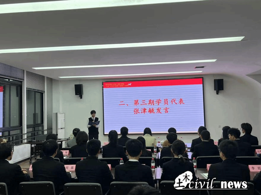 赵子强、骞骏骁同学上台带领“红志”全体同学庄严宣誓,“铭记兴我中华之责任,铭记土木百廿之历史;传承竢实扬华交大精神,发扬严谨治学土木传统……”,“红志”班学员的誓言经久不息,铿锵嘹亮。