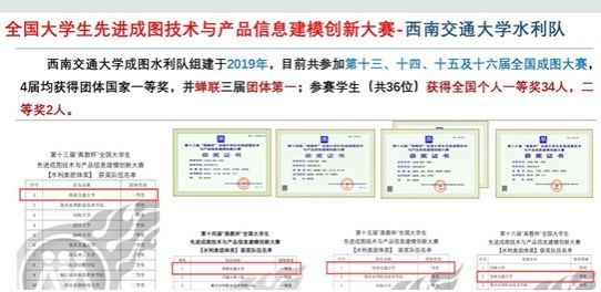 全国大学生先进成图技术与产品信息建模创新大赛是中国教育部及西南交通大学认证的A 类学科竞赛。西南交通大学水利队连续参加了第十三至十六届先进成图大赛,成绩如下: