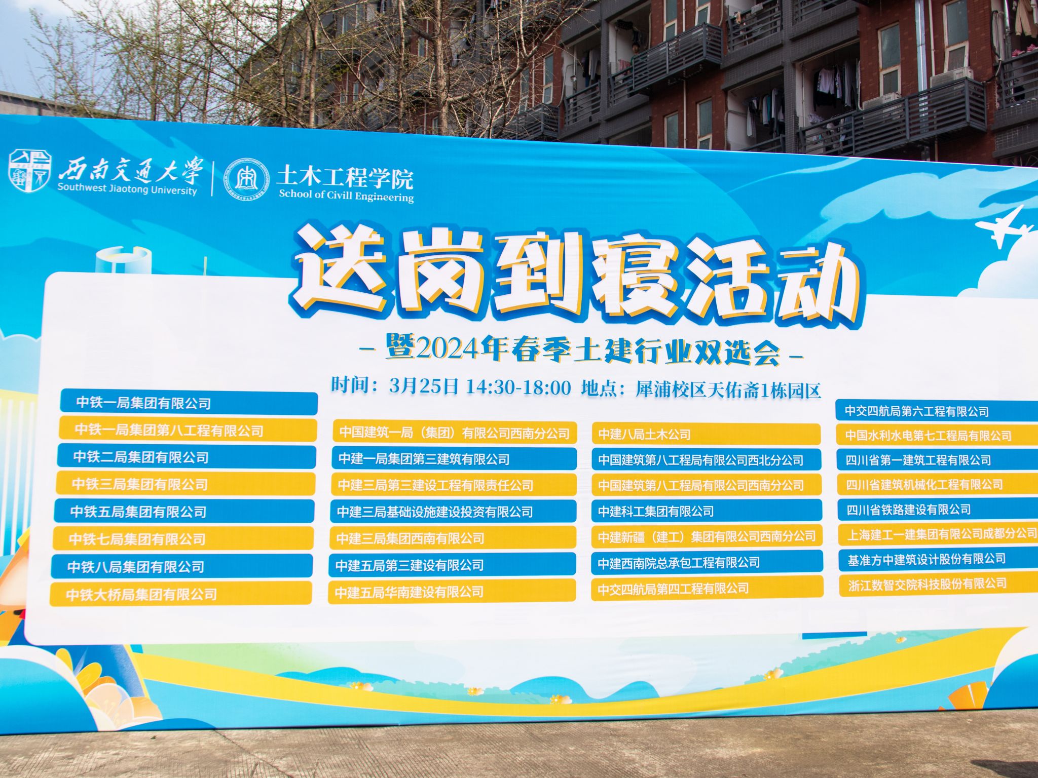 于2024年3月25日下午在犀浦校区天佑斋1栋学生宿舍园区成功举办了一场别开生面的“送岗到寝”活动暨2024年春季土建行业双选会。