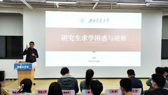 举办了“研途引航,指点迷津”生涯规划讲座,此次讲座邀请了西南交通大学党委学生工作部副部长李毅分享如何科学地做好研究生生涯和职业生涯规划,明确学习目标及就业方向。李部长围绕导学相处、学术科研时间安排、研究生期间正确的应对心态、可能面临的误区、给研究生们的建议五个方面进行了讲解,并解答了在场观众的困惑。讲座结束后,参与同学表示受益匪浅,对开启研究生阶段学习和职业探索提供了有益的启发。