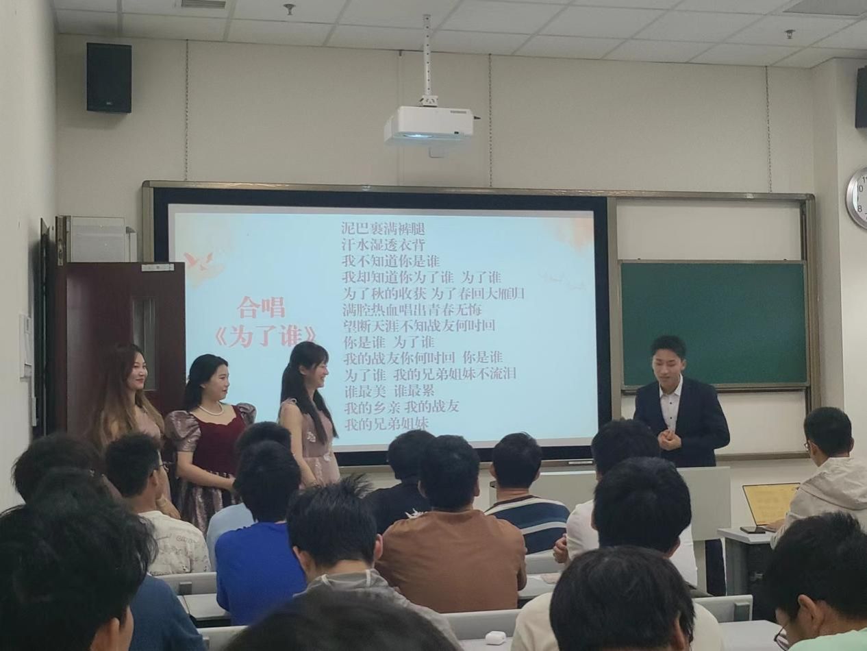 讲演团宣讲队成员带领在场入党积极分子充分学习了《为了谁》的歌曲背景,生动讲述了伟大前辈们的奉献故事后,讲演团表演队成员们演唱了《为了谁》这首歌曲。