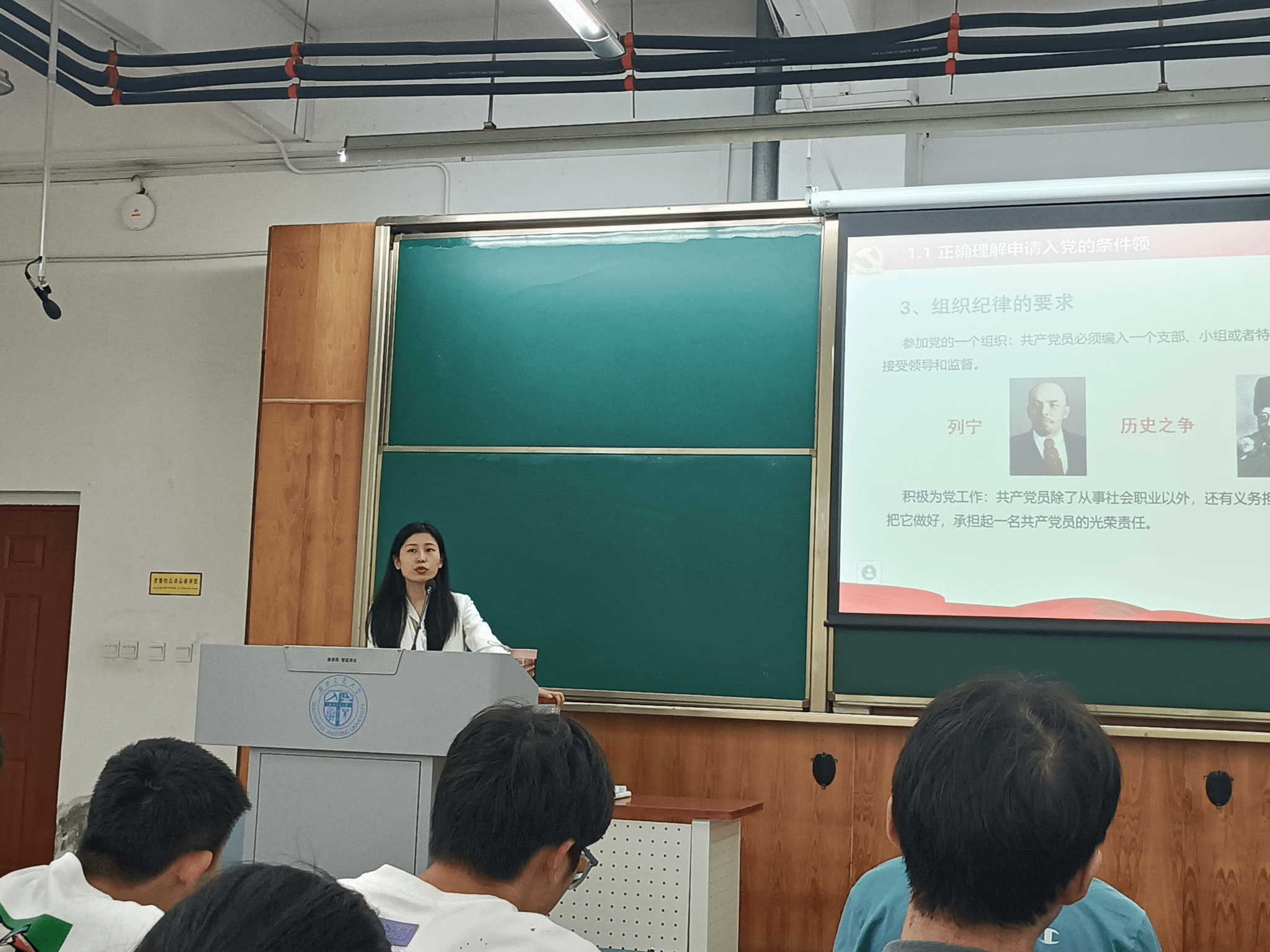 党委副书记周曦、李开弟老师、杨育鸿老师、刘萍老师、熊麟老师以及唐丹老师为入党积极分子讲授主题党课。