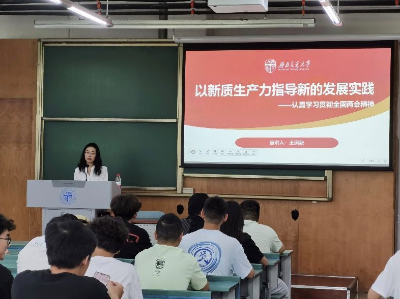 为认真学习贯彻全国两会精神,提高发展对象的党性修养,坚定其理想信念,王潇毅博士以“以新质生产力指导新的发展实践”为主题,以“新质生产力布局产业及产业链深度转型升级”为落脚点,深入浅出,科学地回答了什么是新质生产力,以及为什么要发展新质生产力等关键、核心问题,深刻阐述了习近平总书记“坚持新发展理念,推动高质量发展”的全国两会重要讲话精神,为发展对象们提供了宝贵的思想指导。