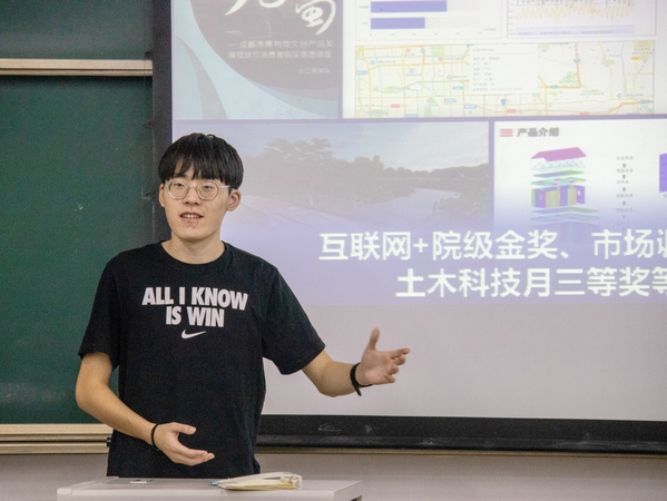 周弋力同学于X2227与土木2022级15-17班同学们展开交流。周同学主要从自己的日常学习经历、竞赛活动以及社团经历三方面展开分享。他讲到:在大学生活中大家可能会遇到各种困难,但在面对困难时不应胆怯,积极应对才是上策。同时,他还建议同学们明确竞赛的目的,“适合自己的才是最好的”,有主见地去做出正确的选择。