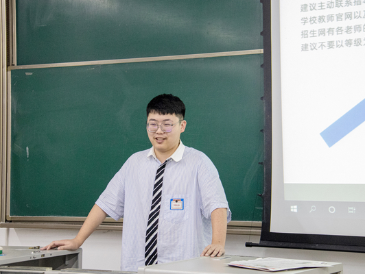 尚晓朕同学于X2229与2022级铁道1-2班同学们展开交流。在活动中,尚同学围绕“如何在大学寻找最优解”这个问题,着重从考研、保研、工作这几个方面向同学们分析本科学习阶段努力的方向。他告诉大家,要把学习放在首位,提高自身能力是有所作为的基础,通过积极参与组织事务提升自己的工作和交际能力。最后他祝愿同学们可以 “努力学习,将心中的憧憬变为现实。”