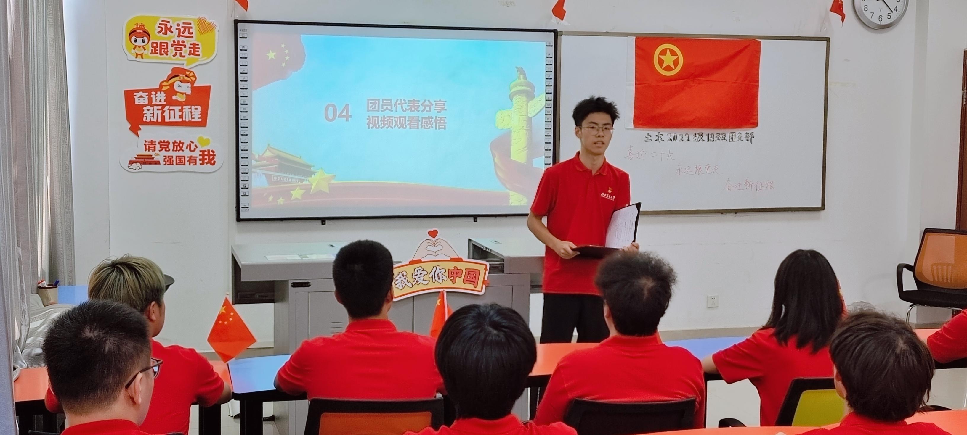 随后,团员代表任阳博同学向团员青年分享了自己的观后感言;何超仪,沈泽洋,陈浩然同学共同朗读红色经典作品选段《可爱的中国》;权益委员余天才同学向同学们热情分享了自己对未来的积极规划……同学们听后纷纷表示将谨遵习近平总书记教诲,以实现中华民族伟大复兴为己任,增强做中国人的志气、骨气、底气,不负时代,不负韶华,不负党和人民的殷切期望!最后,团支部全体成员一起合唱了《没有共产党就没有新中国》并发出“永远跟党走,奋进新征程”的青春誓言。