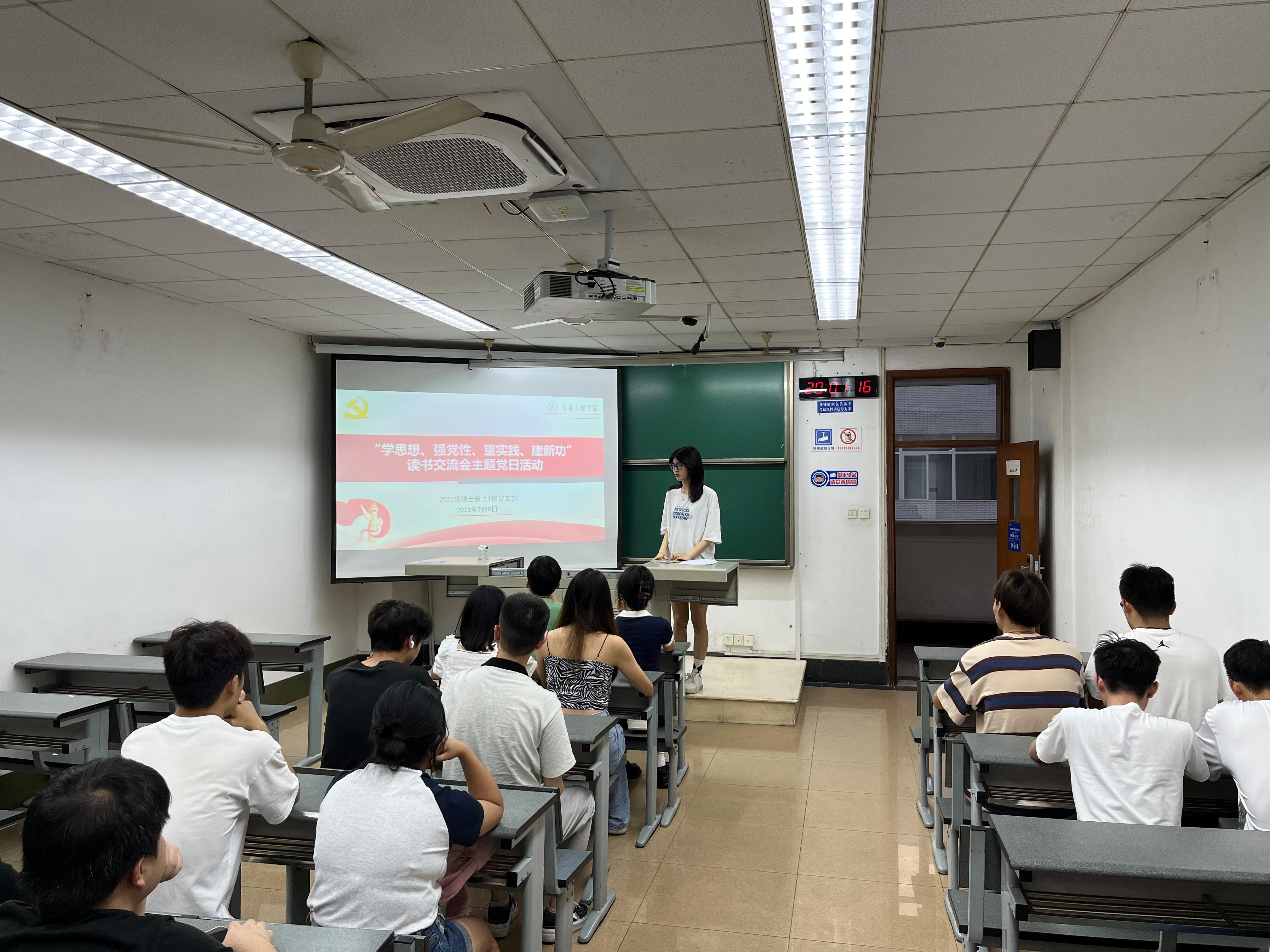 2022级硕士岩土1班党支部在九里校区逸夫楼4404A教室开展了“学思想、强党性、重实践、建新功”读书交流会主题党日活动。旨在通过党员之间的学习和交流,进一步加强党性修养,促进相互启发,提高思想认识。活动中,3名党员作为领学者,分享了自己的学习体会,其他党员则以谈感想、谈认识的方式进行交流。2022级硕士岩土1班党支部全体党员及入党积极分子参与了本次活动。